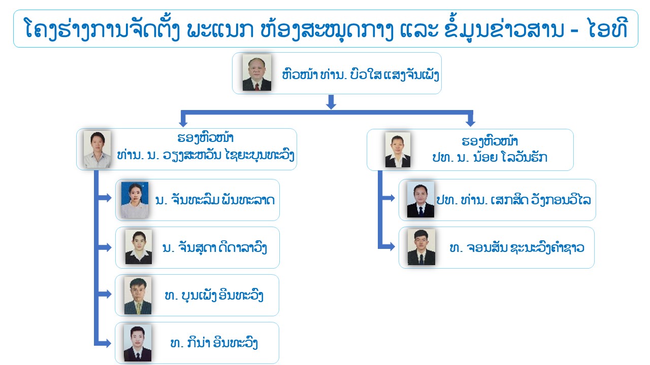 - ພັດທະນາລະບົບເຄືອຄາຍຂໍ້ມູນຂ່າວສານທີທັນສະໄໝ ໂດຍນຳໃຊ້ລະບົບໄອທີ ເຊື່ອຕໍ່ຂໍ້ມູນທັງພາຍໃນ ແລະ ຕ່າງປະເທດ